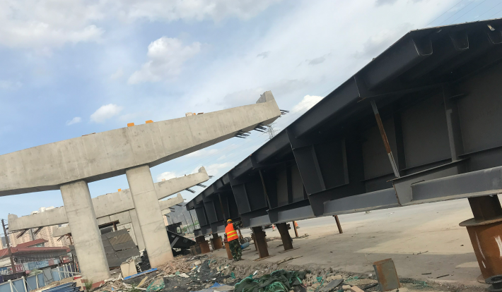 蘭州西固鋼箱梁項目直線段三拼第6段預拼完成。