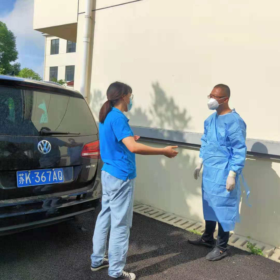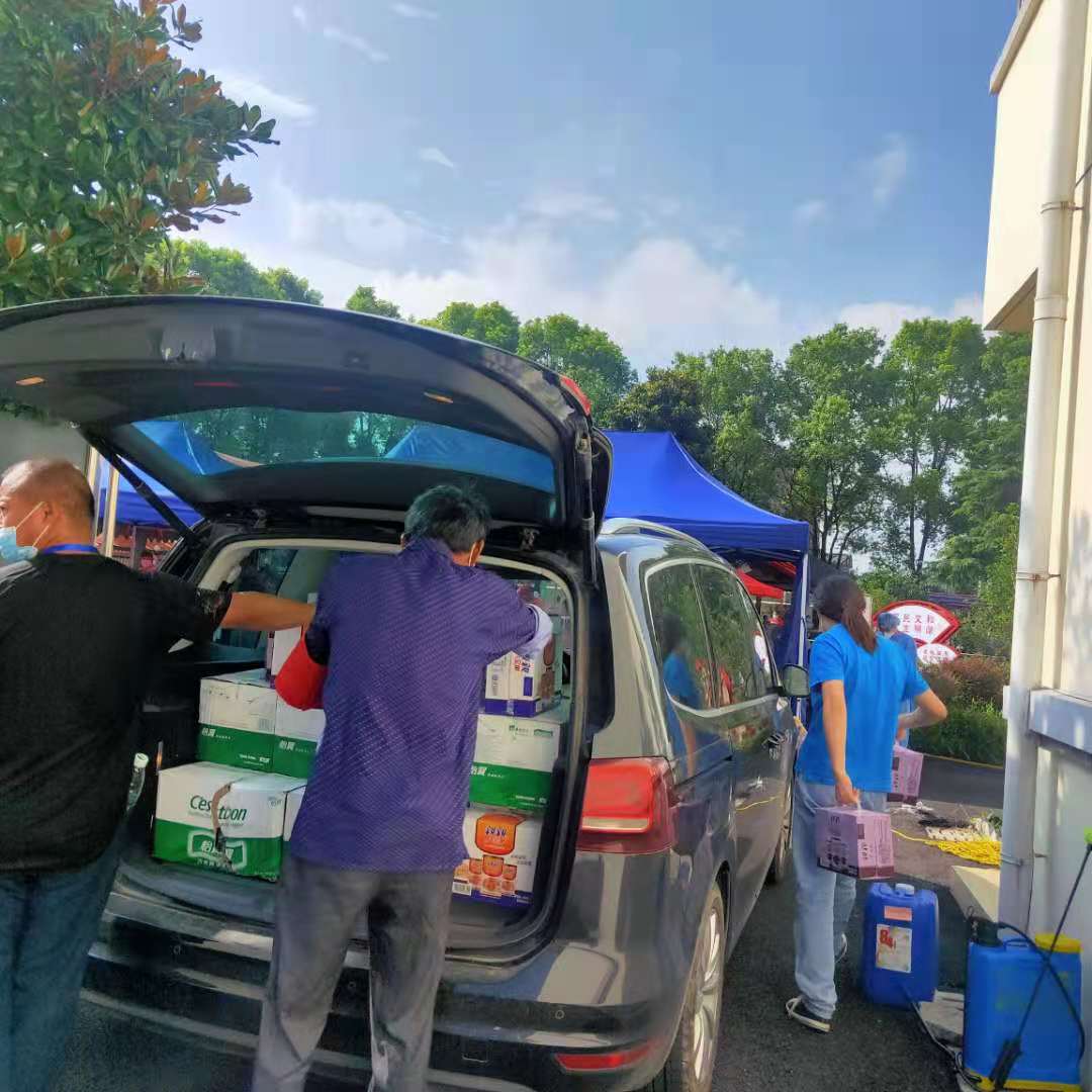 2021年8月6日,公司陳總帶著飲用水、八寶粥等物資,前往花蕩村核酸檢測點慰問抗疫一線人員。