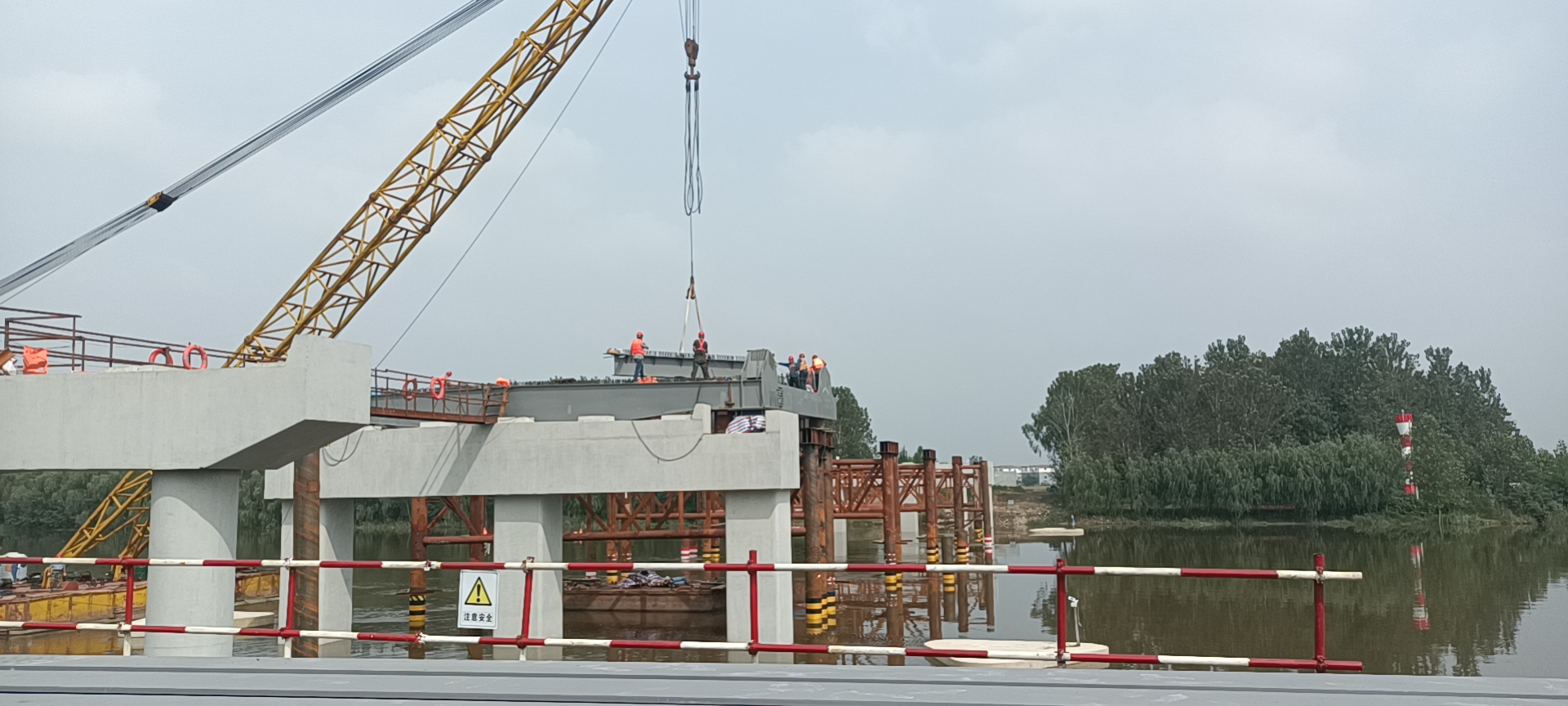 2021年9月3日,濟徐高速公路順河互通連接線復新河大橋工程施工現場看到,江蘇三工鋼橋的建設者們正在進行架梁的施工。而根據計劃,預計今年底,復新河大橋就將建成。