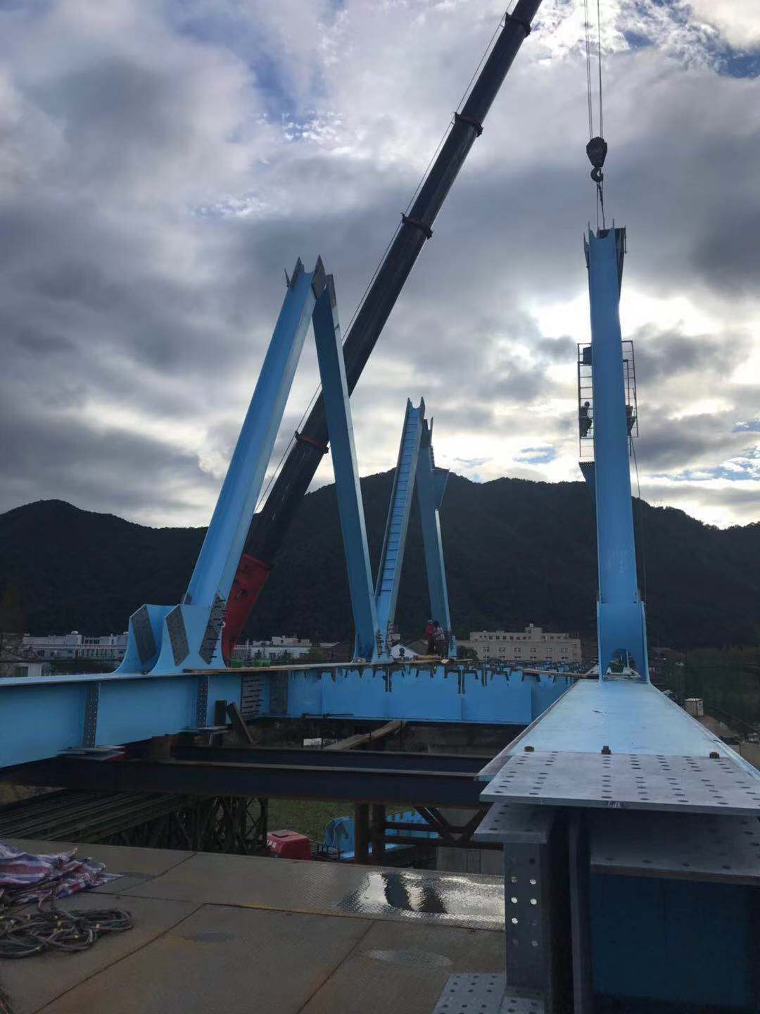 金臺64m簡支鋼桁梁開始吊裝橋門