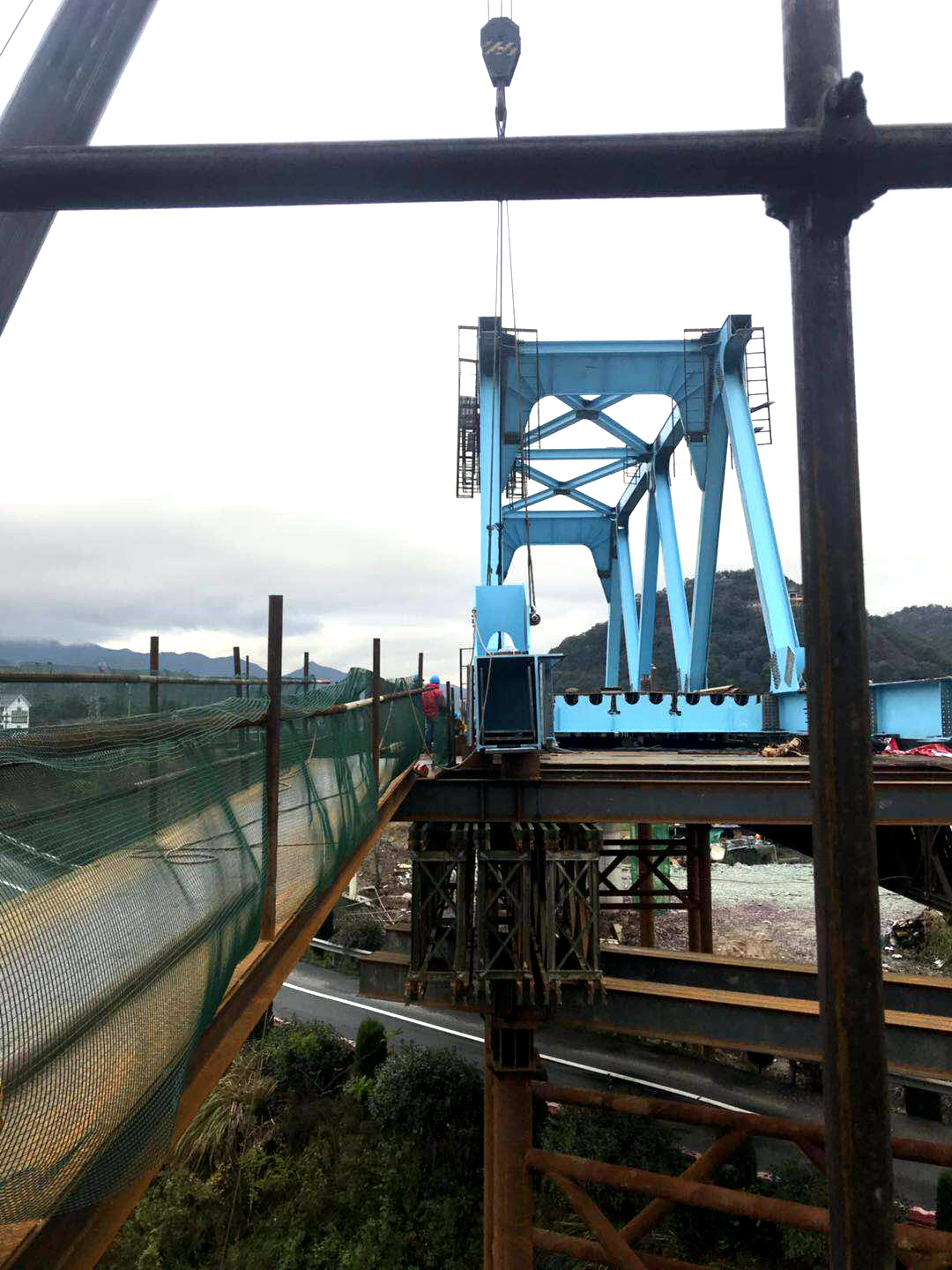 臺州64M簡支鋼桁梁第二孔橋吊裝完成