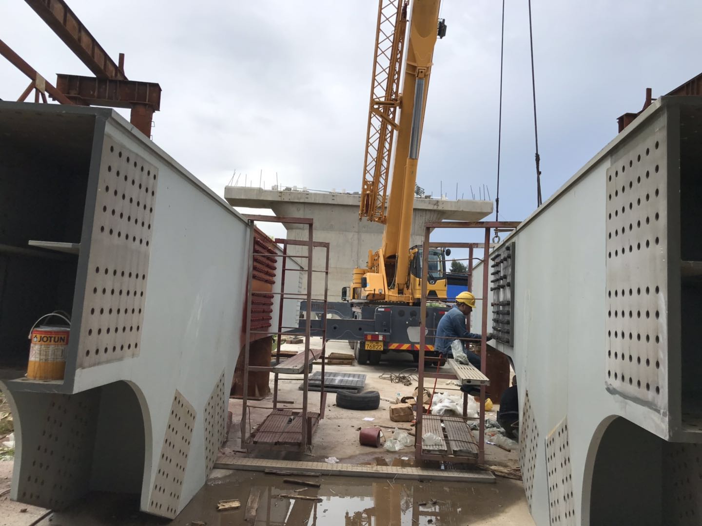 蘭州鋼箱梁項目F段已完成4片,第5片準備起勾。