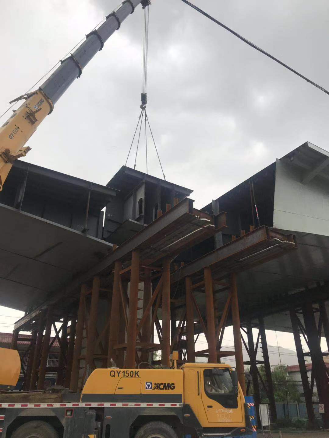 2019年7月23日蘭州鋼箱梁項目e段正在吊裝定位,