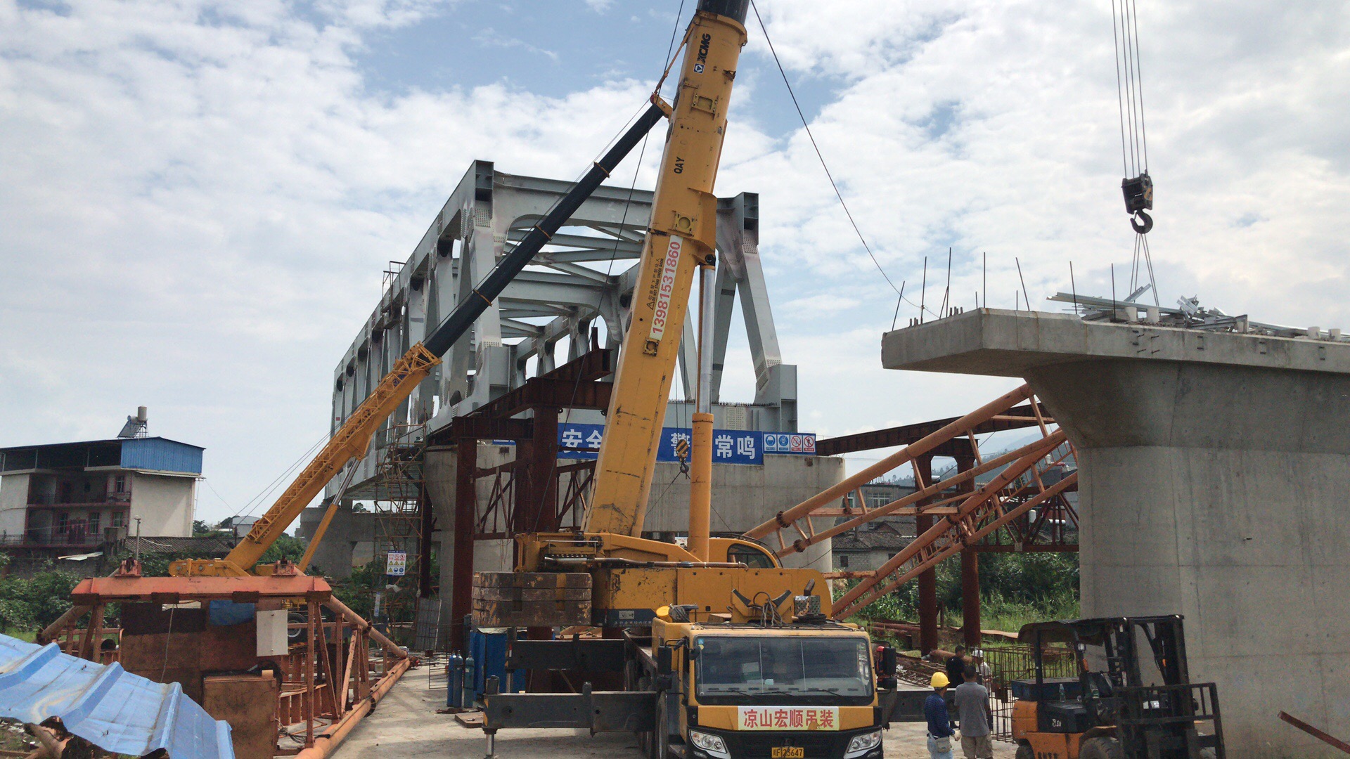 西昌項目支架還有最后一段,龍門吊肢解過半