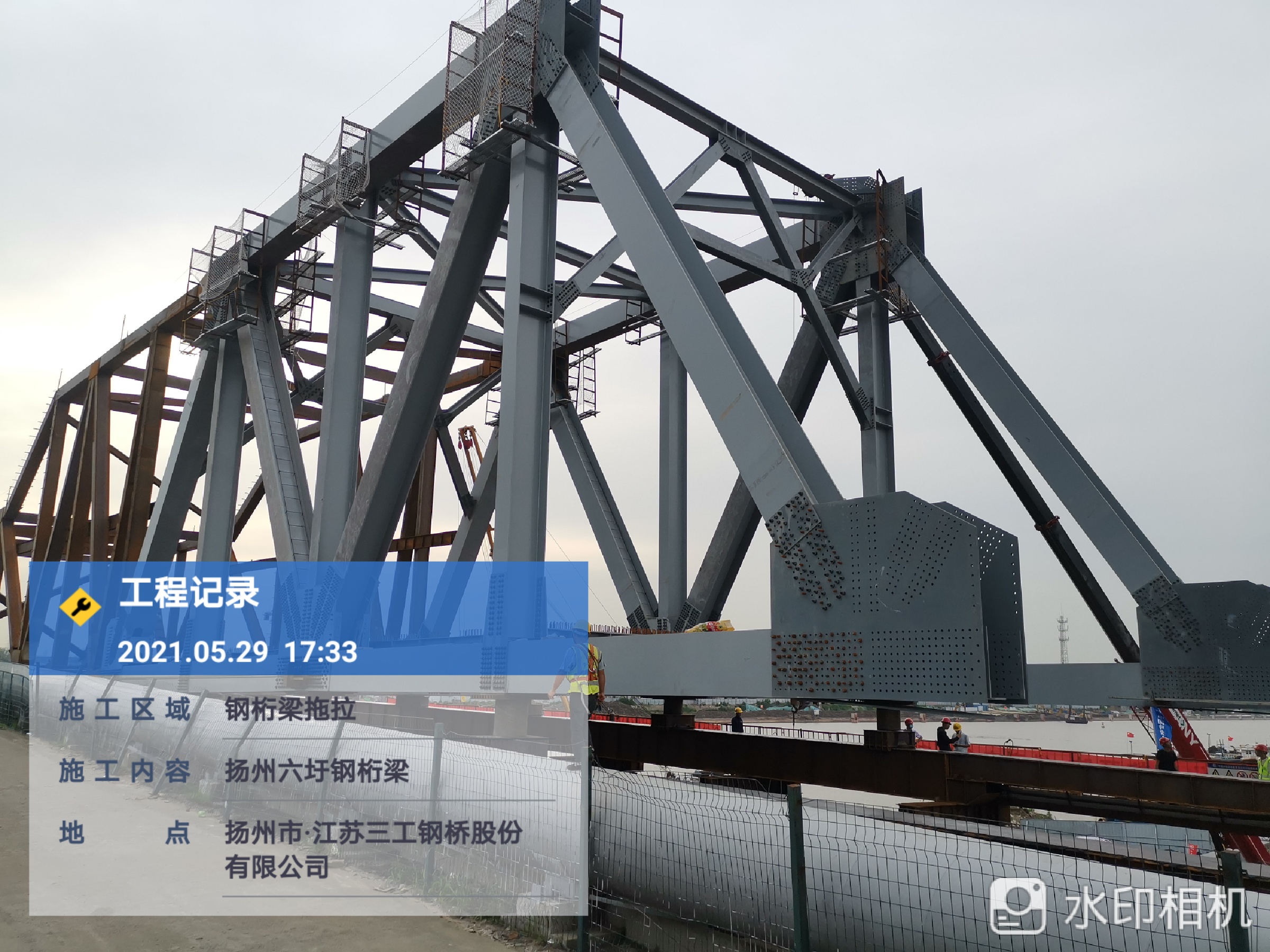 2021年5月29日,我公司承建的揚州六圩鋼桁梁第一次拖拉施工成功到位!