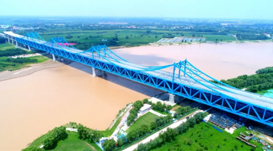 石家莊至濟南客運專線是青(島)太(原)客運專線的一部分,建成通車后連接起京廣高速鐵路、京滬高速鐵路兩大高速交通大動脈。石家莊至濟南鐵路客運專線濟南黃河公鐵兩用橋是全線控制性重點工程,全長1792公里,主橋采用(128+3x180+128)米剛性懸索加勁連續鋼桁梁跨越黃河主槽,是我國第一座大跨度剛性懸索加勁連續鋼桁梁公鐵兩用橋,且首次采用帶加勁弦多點同步頂推等施工新技術,取得了多項技術創新和突破。